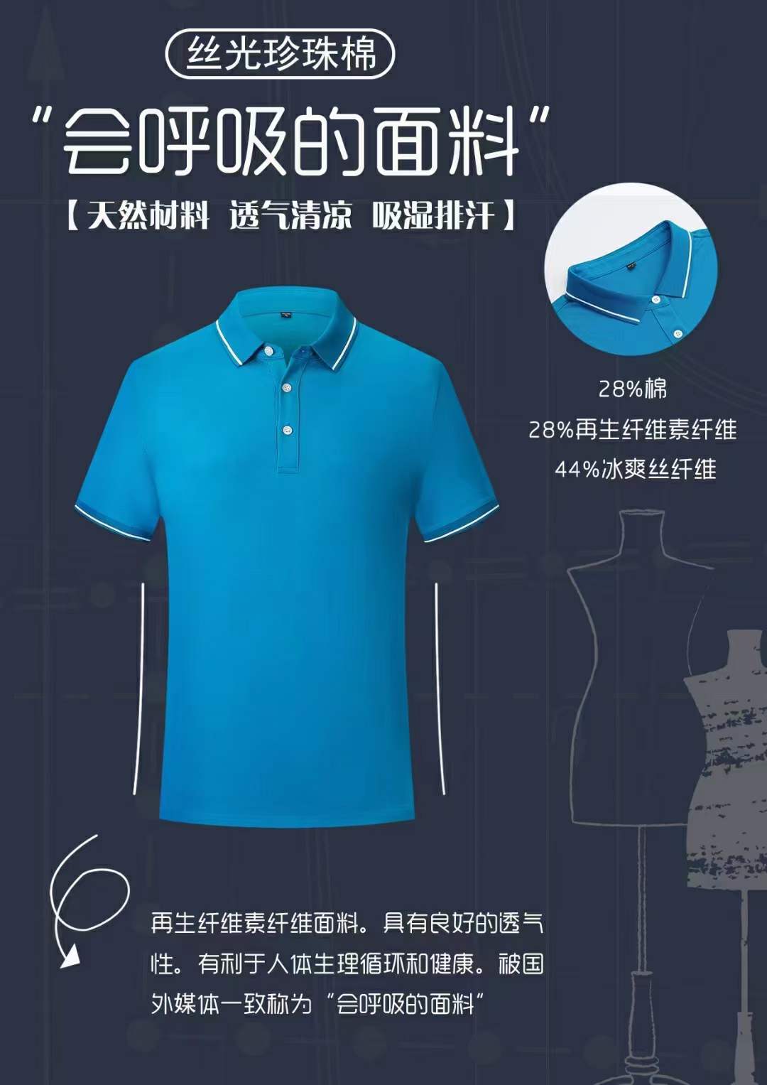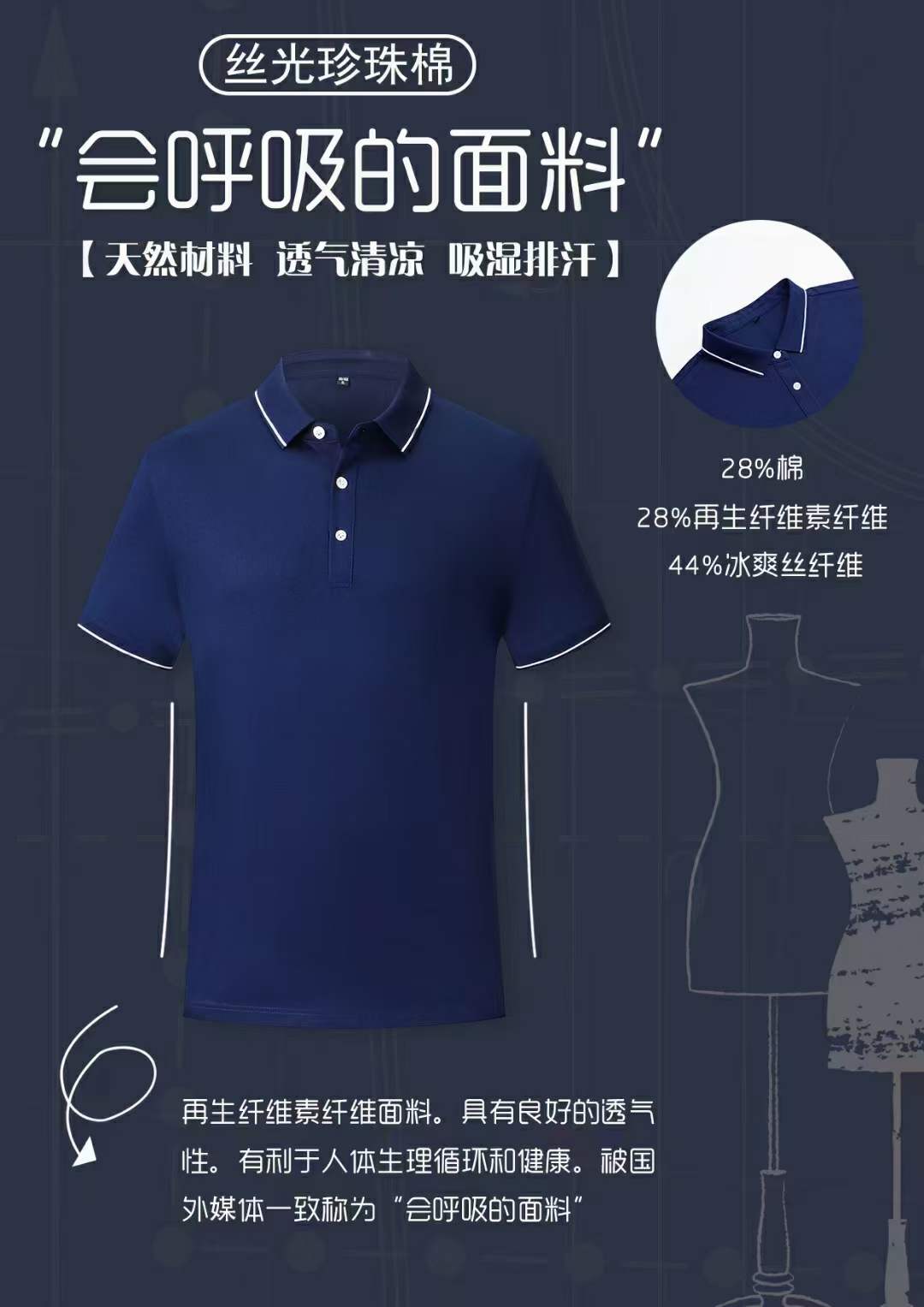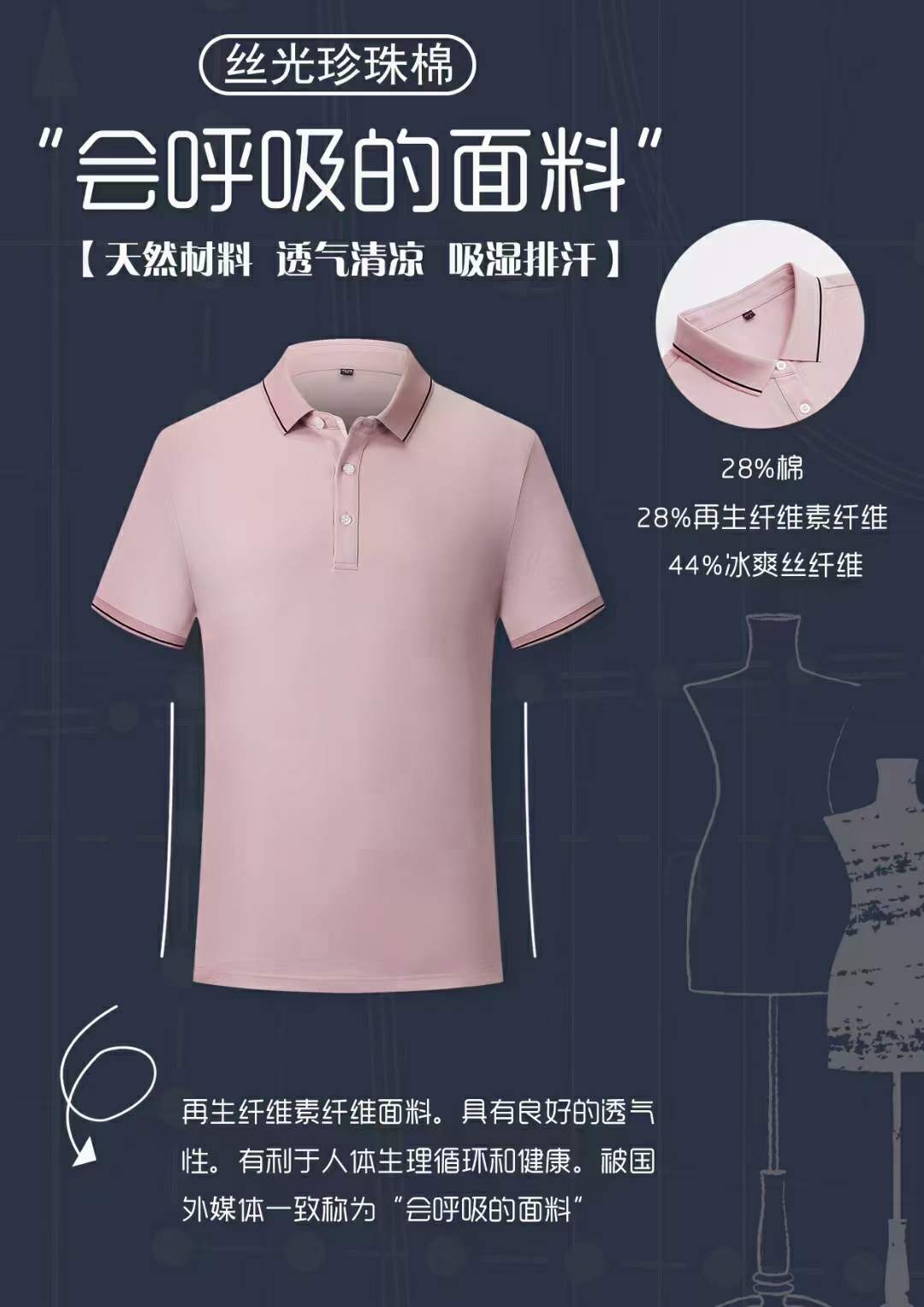 丝光珍珠polo衫绿色天然, 透气清凉 ,吸湿排汗 ,亲肤舒适 ,抑菌功能